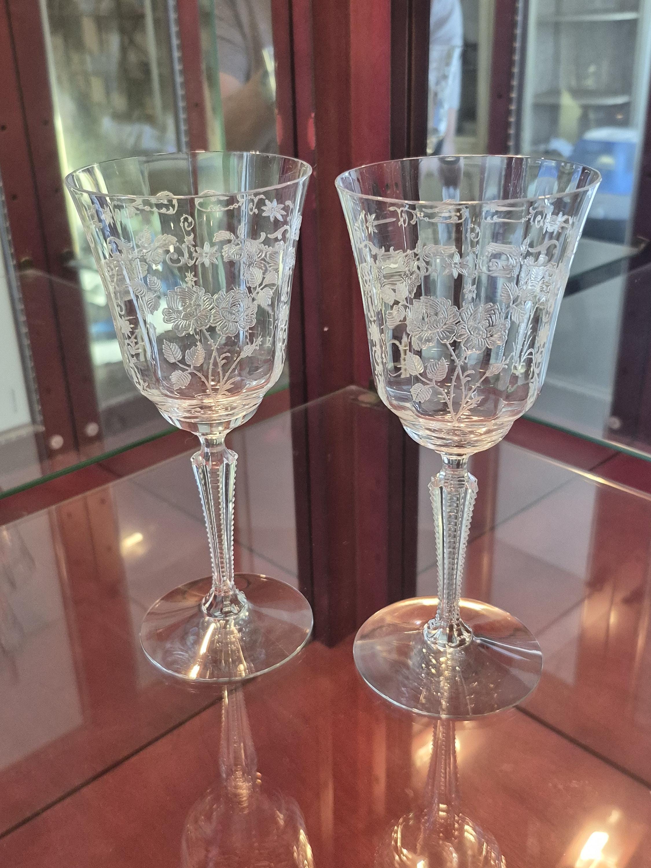 The Midnight Rose pattern by the Fostoria Glass Company, originally founded in Fostoria, Ohio in 1887 and later moved to Moundsville, West Virginia, is a timeless example of Depression-era elegance. Produced between 1933 and 1957, this pattern features delicately acid-etched roses and foliage gracefully decorating clear crystal glassware. Its romantic floral design makes it a sought-after collectible for vintage enthusiasts, particularly prized for pieces like divided relish dishes, wine glasses, and serving bowls. The brilliance of the crystal combined with the fine etched detailing captures the charm and craftsmanship that defined Fostoria’s golden era of glassmaking.